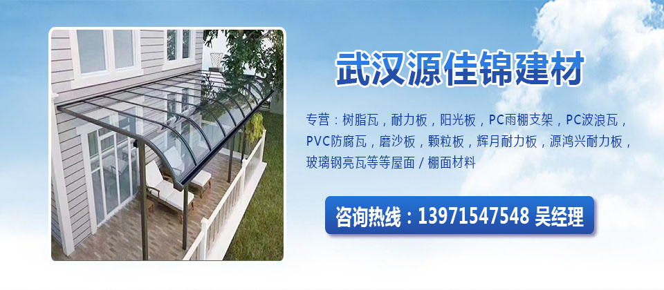 關(guān)于我們武漢市源佳錦建材有限責(zé)任公司是一家從事屋面/棚面/墻面材料的廠家,專營:樹脂瓦,耐力板,陽光板,PC雨棚支架,PC波浪瓦,PVC防腐瓦,磨沙板,顆粒板,輝月耐力板,源鴻興耐力板,玻璃鋼亮瓦,鋁隔熱瓦,長城板,鋁隔熱板等等屋面/棚面/墻面材料!規(guī)格可以按您要求定制。公司始終堅持把產(chǎn)品質(zhì)量視為企業(yè)生存的基礎(chǔ),把滿足客戶的要求視為企業(yè)的宗旨,把誠信負責(zé)作為經(jīng)營理念。歡迎來電咨詢!
